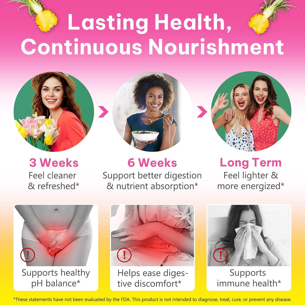 Vaginal Probiotics for Women Gummies,Digestive Health Support,PH Balance,Immune Support,Yeast Control,Odor Relief,Promotion of Womens Health,Natural Pineapple Flavor,Vegan,Gluten-Free,60 Count (1)